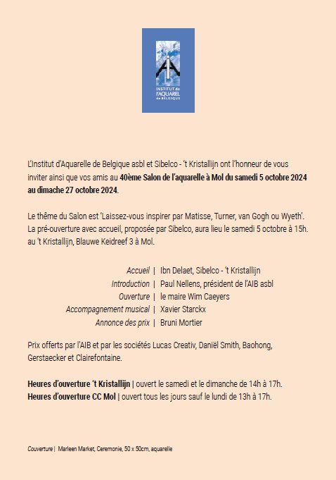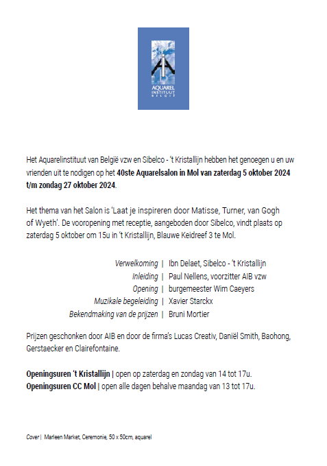 Tijdens de opening van het 40ste Salon van het AIB (Aquarel Instituut België), in het Kristallijn in Mol, werd mij een prijs overhandigd.
