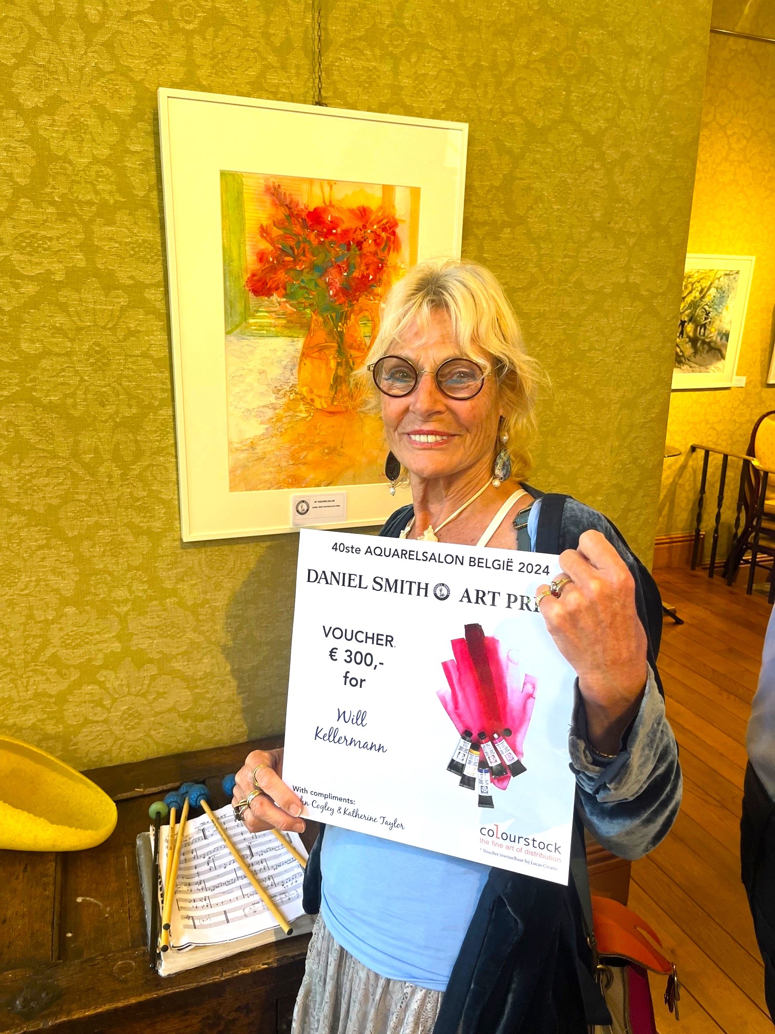 De Daniel Smith Art Prize met complimenten van John Cogley and Katherine Taylor werd uitgereikt voor mijn aquarel “Carpe Diem”. De rijkdom van pigment en kleurkeuze van de aquarel wisten zij zeer te waarderen. De Daniel Smith Watercolours zijn beroemd om hun pigment sterkte en prachtige kleuren. Ik voel me zeer geëerd.